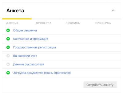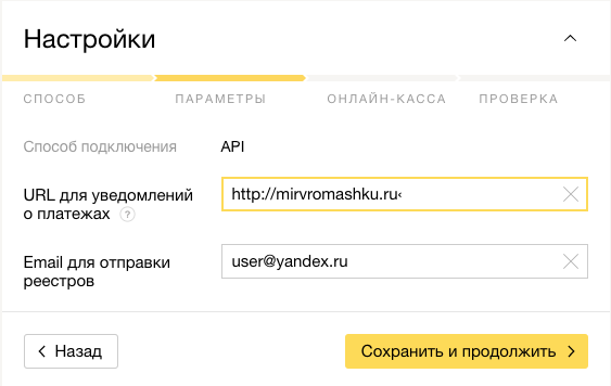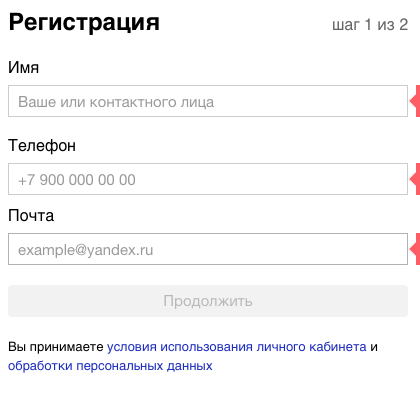 | Email для отправки реестров | Ваш рабочий почтовый ящик, на него будут приходить документы от Яндекса |