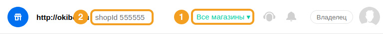 Войдите в личный кабинет Ю.Кассы. В верхней панели выберите необходимый магазин и скопируйте shopID (Рис. 1)